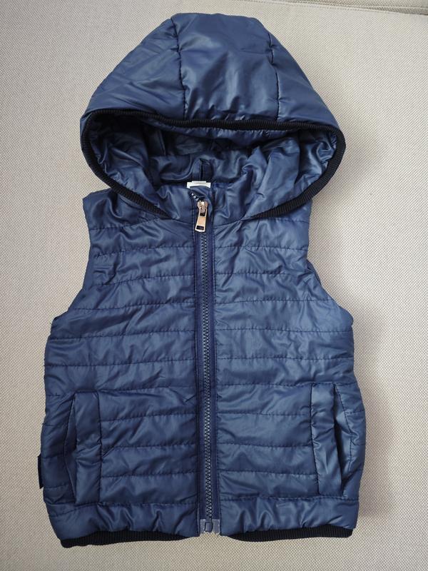 Жилетка темно синяя на мальчика с капюшоном и карманами на рост 92 см.