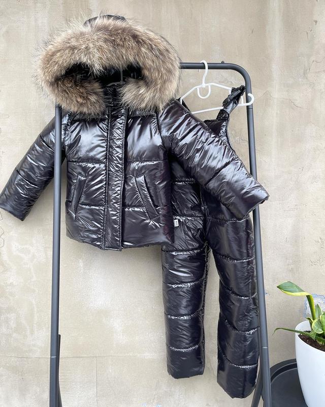 Зимовий костюм з єнотом до -30 морозу чорний лак монклер