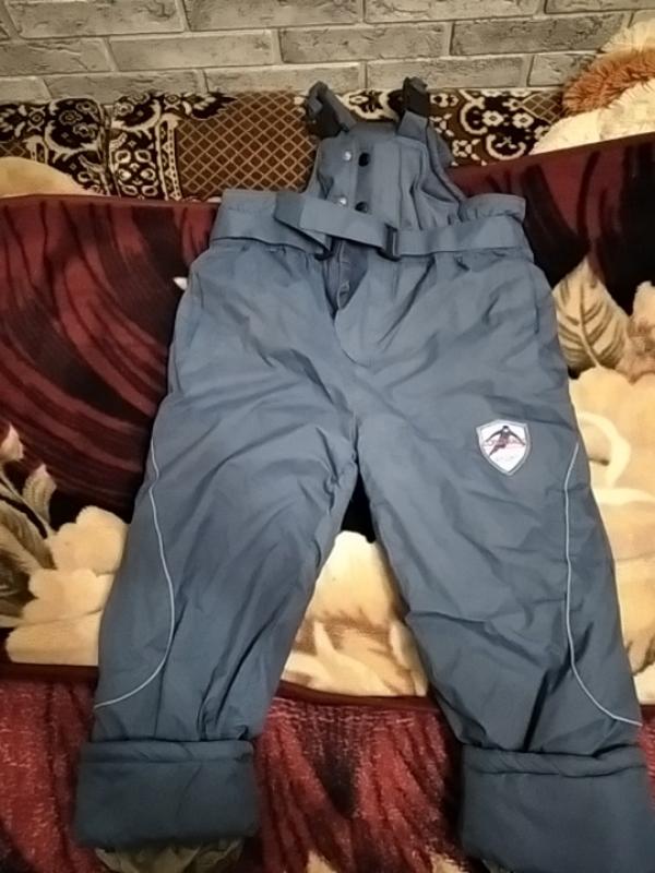 Штани - комбінезон для прогулянок взимку. Підійде для хлопчика 8 - 10 років. Внизу манжети і резинка. Бретелі та пояс регулюються. Зашивала ( на фото видно).