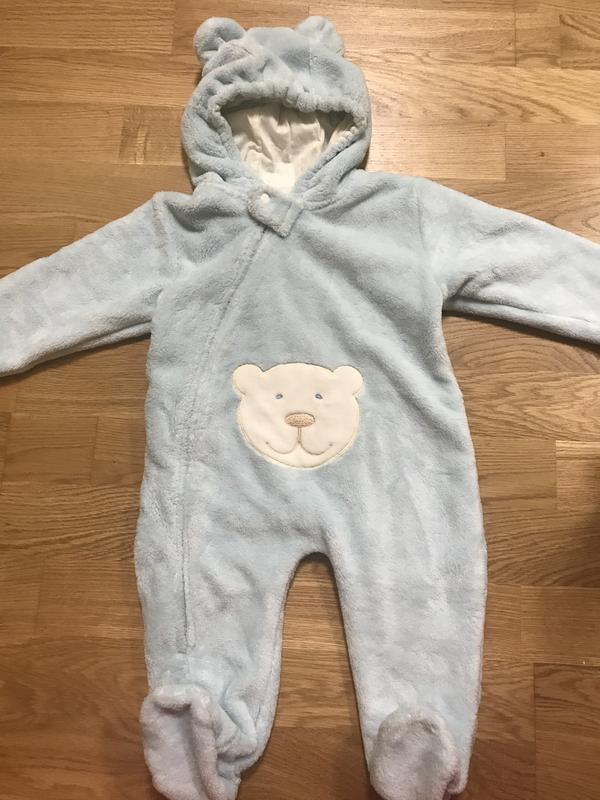 Наш комбинезон Одели 2-3 раза, как Новий! Очень мягкий на молнии Замеры: От плеча к пятке 62 см К памперсу 40 см От памперса к пятке 24 см Рукав 25,5 см Грудь 32 см Дополнительные фото и замеры сделаю