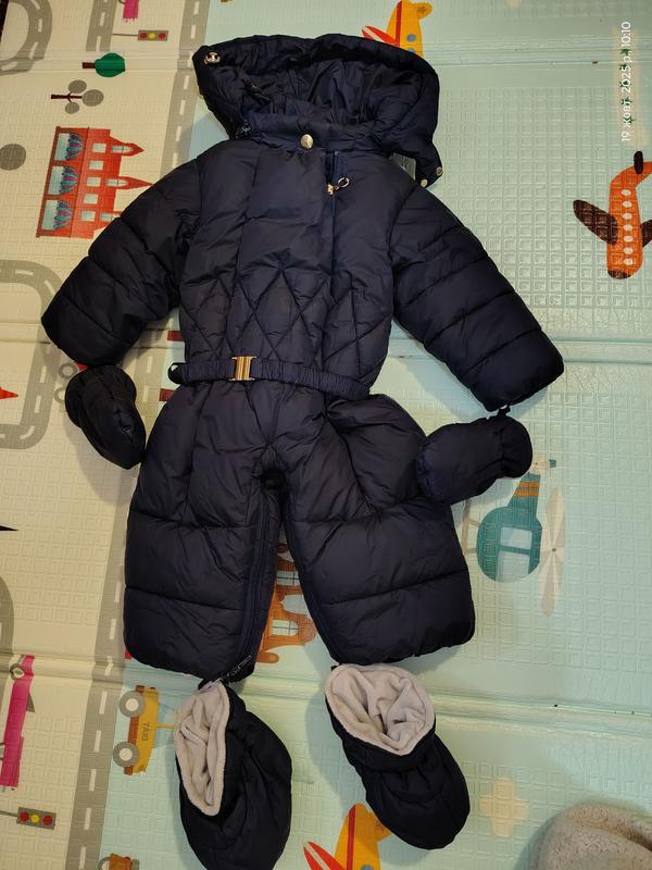 Комбинезон зимний.Очень теплый в красивом состоянии подкладка из меха Тедди.В наборе перчатки и пинетки.Можна использовать от рождения и до года полтора в зависимости от ребенка.Есть обувь к нему.Если заказ через приложение то + Коммунцию.