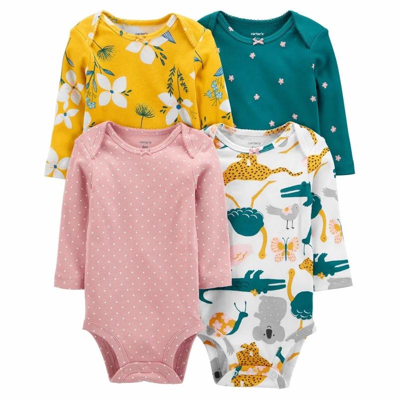 Комплект боді абсолютно незамінний у гардеробі. Змінюйте їх як хочете, коли хочете. Комбінуйте з іншими елементами, адже в комплекті завжди знайдеться боді під будь-який стиль та настрій. Боді багато не буває — точніше описати перші два роки життя з дитиною навряд чи вийде. З перших днів такий універсальний предмет гардеробу стане незамінним помічником батькам. Найважливіші критерії у виборі боді для новонародженого: Безопсаність матеріалів, зручність (як для дітей, так і їхніх батьків), стійкість до зносу тканини і швів, а також стійкість квітів, адже прання боді це скоріше повсякденне завдання. У комплекті боді від Картерс повністю дотримуються всі ці вимоги Склад комплекту: 100% бавовна, плетіння рибану* *Рібана це трикотажна матерія зі 100% бавовни, створена за технологією "поперечного" в'язання, завдяки чому має приємну фактуру та ідентичний вигляд як зовні, так і на вивороті. До складу комплекту входить: — Боді рожевого кольору в білий горошок — Боді білого кольору із малюнками тварин — Боді жовтого кольору із малюнками квітів — Боді зеленого кольору із малюнками квітів З особливостей даного комплекту слід зазначити: • Гіпоалергенність • М'які шви не натирають шкіру малюка • Горловина виконана "внахлест", для простоти одягання малюка • Застібка у вигляді кнопок між ніжками • Кнопки в застібках не містять нікелю і не "іржавіють" • Завдяки типу тканини - виріб стійкий до зношування та втрати кольору. • Підходить для машинного прання Про бренд: Carter`s — всесвітньо відомий американський бренд стильного та модного дитячого одягу. Штаб квартира компанії розташована в Атланті. На даний момент "Картерс" - один з найбільших виробників дитячого одягу в США, що реалізує продукцію під шістьма популярними брендами, двоє з яких - Carter's та OshKosh B'gosh, стали невід'ємною частиною американського стилю.