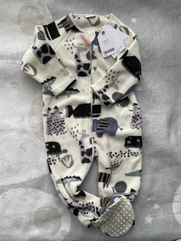 Теплий флісовий комбінезон від next, підійде як для хлопчика так і для дівчинки, з красивим принтом, одягається дуже легко та зручно