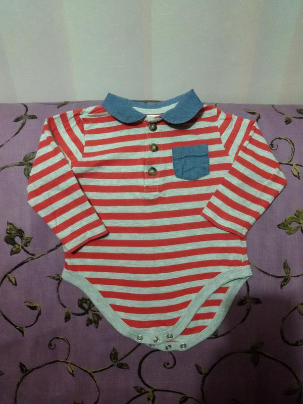 Состояние без замечаний. Тоненький, мягенький трикотаж. Воротник и карманчик тоненькая ткань под джинс. Размер указан 9 - 12 месяцев. Замеры : Длина плечо-пах 39 см ПОГ 27 см Рукав 25 см Плечо 4 см