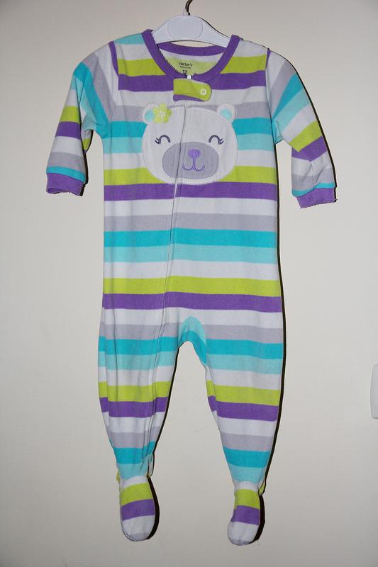 Человечек Carters флис состояние видно на фото - есть катышки и белый стал немного серым, змейка и кнопочка рабочие, других ньюансов нет