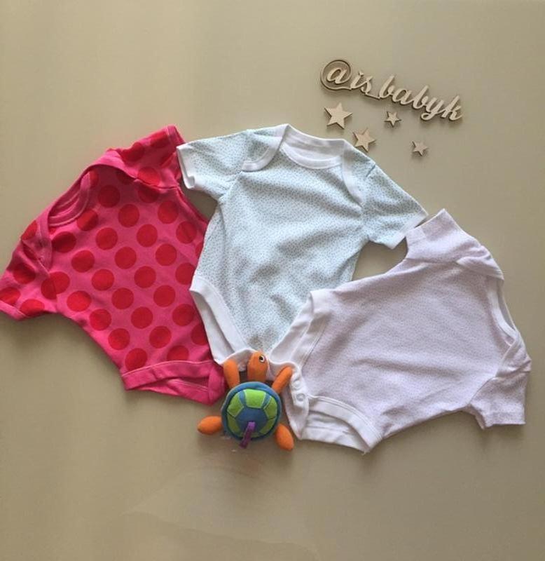 Отличный набор из 3-х бодиков с коротким рукавом, 100% коттон. Хороший вариант на подарок. Акция!!!! 4-й бодик в подарок, последнее фото Размер: 0-3 мес, рост 62 см Замеры: ширина с подмышек 22 см, длина по спинке 34 см