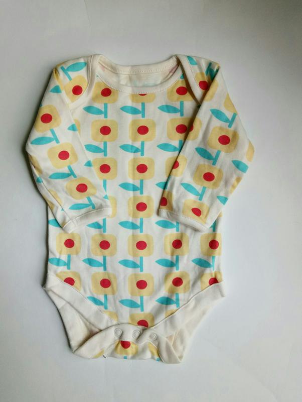 Фирменный бодик. В наборе было три штучки. один так и не одели, продаю. длина по спинке с закрытими клёпками 33.