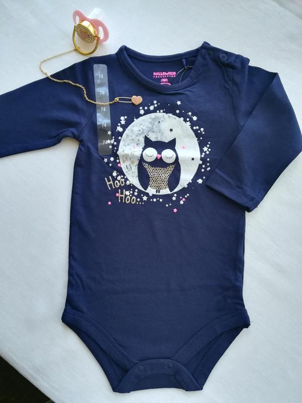 Бодик для девочки с совушкой размер 74 При покупке от 3х единиц скидка 10 %!