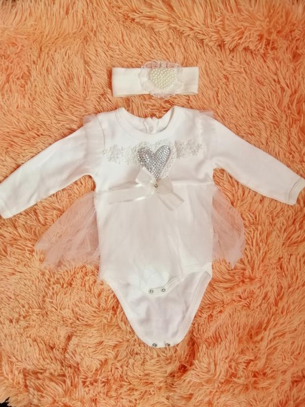 Боді з фатиновою юбочкою на принцесу 6-9 міс, 74 см. Підходяща пов'язочка з сердечком в подарунок. Котон. Стан нового.