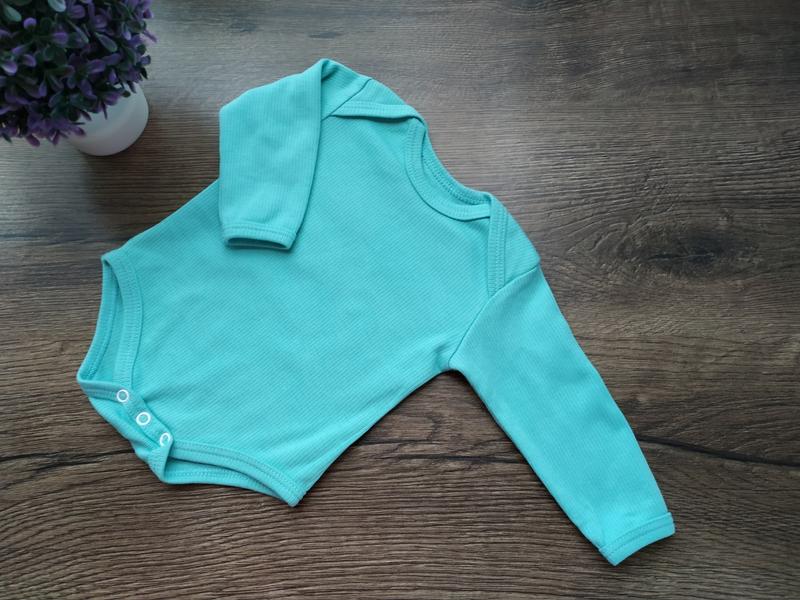 Состояние идеальное, без нюансов. 100% котон. Застёжка на трех кнопках на памперсе, на плечиках без кнопок, очень удобно быстро одеть даже на спящего ребенка)) Размер по бирке 68 см. Длина от плечика до памперса 32 см. Цвет бирюзовый. Если остались вопросы, пишите, отвечу с удовольствием)) Удачных покупок!