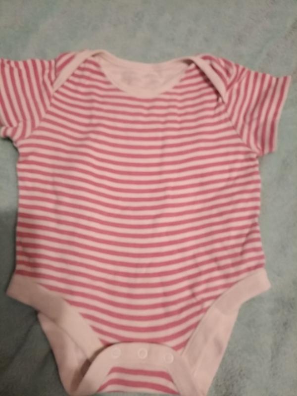 Боди в розовую полосочку.Есть небольшое пятно на фото видно.