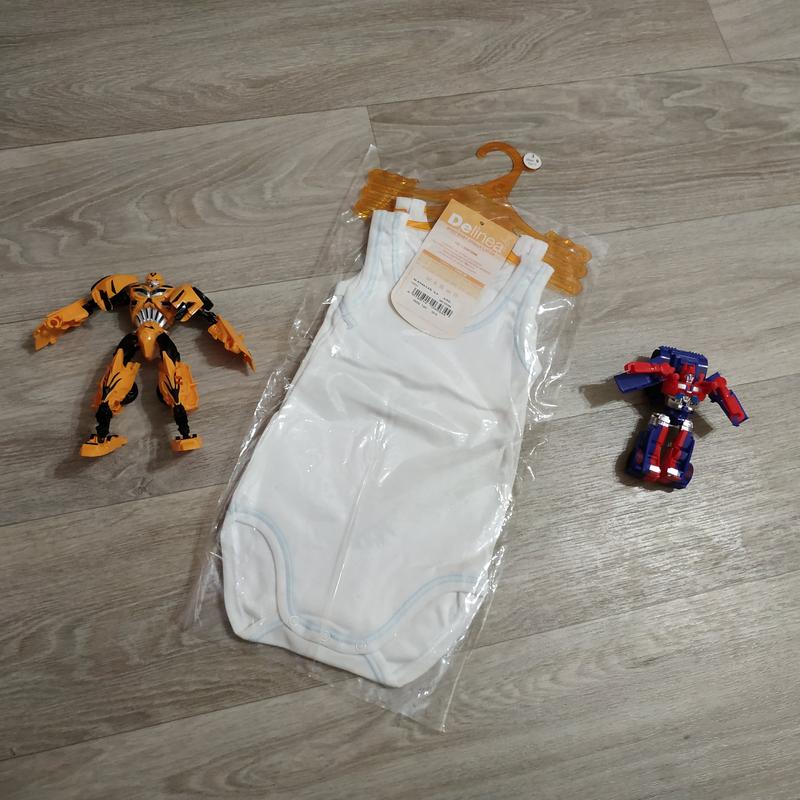 два білих бодіка, на одному шов блакитною ниткою, на зріст 71 см(9 міс). ціна за 1