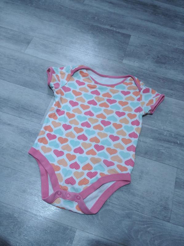 Боди с сердечками. Замеры: рукав 8 см, длина по спинке 42,5 см, пог 30 см, плечи 23 см, поб 27,5 см, есть пятнышко последнее фото.