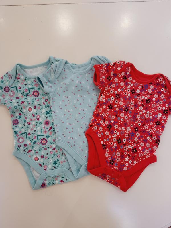 Три бодика в идеальном состоянии на девочку от 6-9мес.Длина по спинке 35см,ширина под мышками 22см.Цена указана за комплект.
