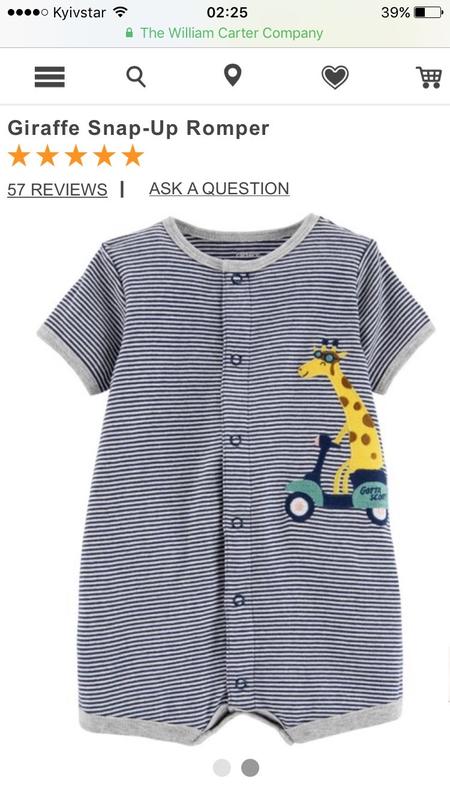 В наявності класний,зручний ромпер з колекції Carter’s Легенький,ідеально на жарке літо! Розмір 9-12міс