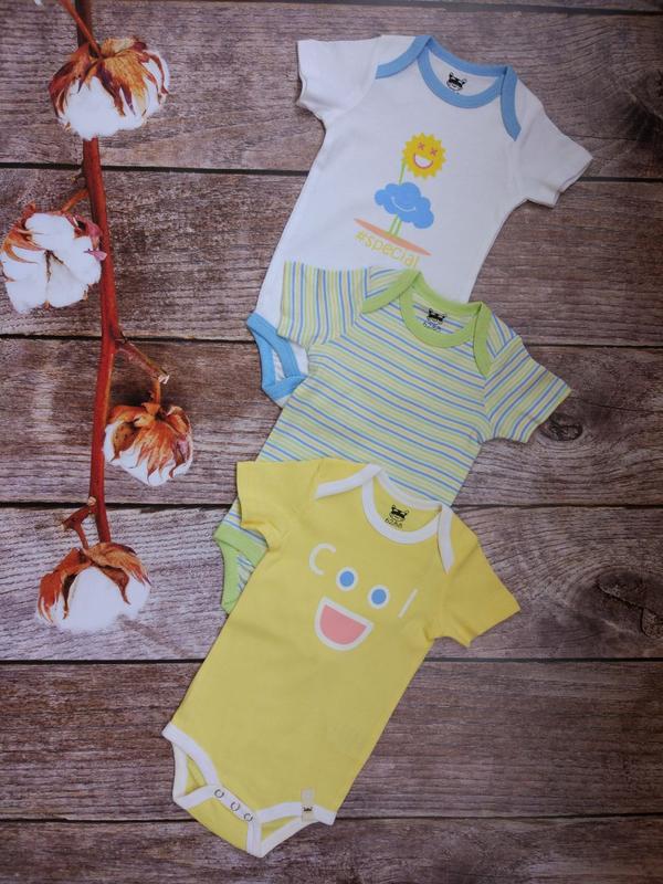 Боді від крутого бренду Kuniboo. Відомі зручні бодіки з емблемою єнотика підходять на кожен день та ідеально сідають на дитинку. Завужений рукавичик не буде розтягуватись при носінні. Внизу боді прошиті зборочкою, завдяки чому повністю закривають підгузок. А милий принт на кожному боді доповнює і надає їм особливої краси. Є у розмірах від 50-56 до 86-92, тобто від 0 до 2-2,5 рочків. Ціна комплекту з 3 боді 250 грн, але можна придбати і поштучно.