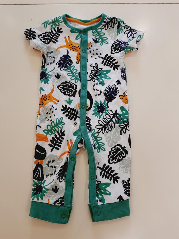 В идеальном состоянии человечек с коротким рукавом на малыша 6-9мес.Длина от плеча до низа штанины 56см, длина по спинке до памперса 37см, ширина под мышками 24см.