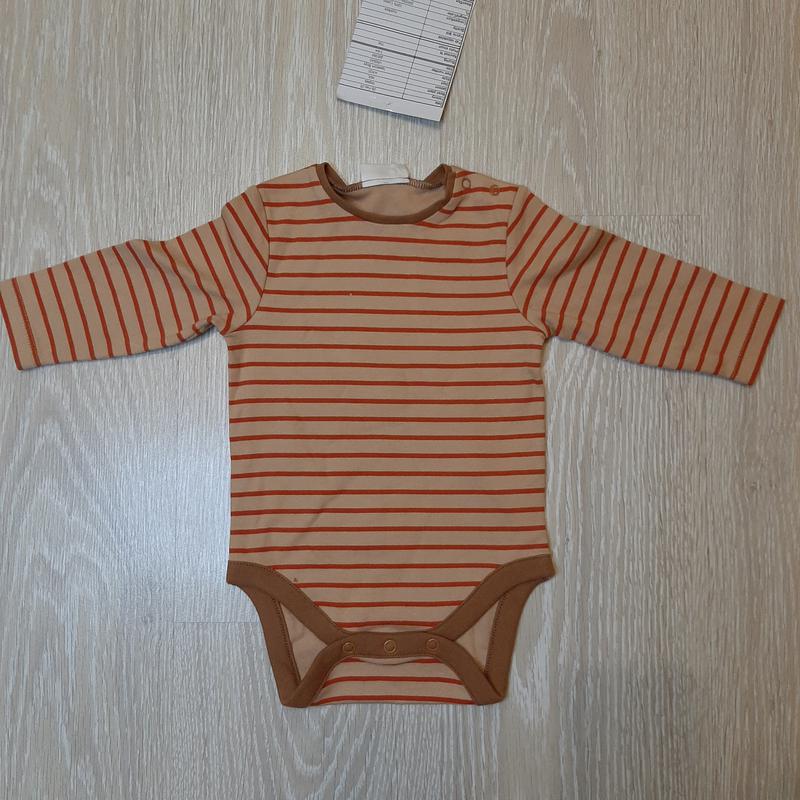 боді на довгий рукав, біля шиї зашпиляється на кнопочки, бежевого кольору в червону смужку,нюанс - внутрішня бірка помальована-маркером, див.останнє фото ✔вік 3-6 місяців півобхват грудей 23см, д/ рукави, 22,5 см, плечі19,5 см, д/ по спині 38см 💬100% котон 🏷next