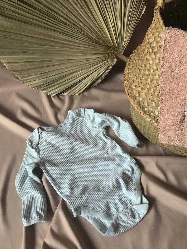 Базовое боди голубого цвета в рубчик с длинным рукавом. Состав: 100% хлопок Доступны размеры: 6-9 мес., 9-12 мес., 12-18 мес. Маломерят