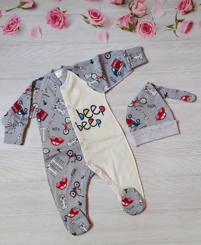 Комбинезон для малышей😍. Манжет закрывает ручку.В комплекте шапочка. Швы наружу. 🔸 Материал: интерлок - 100% хлопок. 🔸 Производитель - Украина. 🔸 Размер: ✅56р. _______________________________________________ Цена 💸:210 грн.