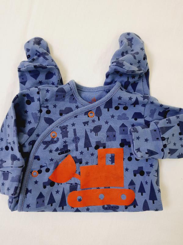 В очень хорошем состоянии человечек на мальчика от 0-3мес.Длина от плеча до пяточки 46см, длина по спинке до памперса 33см, длина рукава с плечом 23см, ширина под мышками 22см.