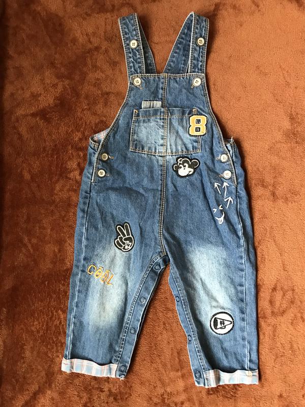 Комбінезон на хлопчика, по 2 ґудзики збоку для зручності, штани на кнопках, всі цілі та гарно тримають) Можна регулювати довжину верхніми ґудзиками. Без дефектів, стан нового.
