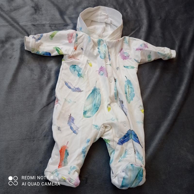 комбінезон трикотажний на кнопки, в ідеальному стані, розмір 56, чудово підійде на виписку з роддому чи хрещення, має в середині трикотажну підкладку, без утеплення, на теплу весну і літо, додаткові заміри надам