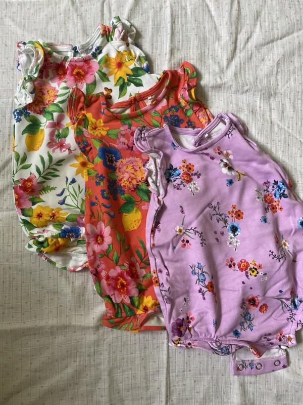 Яркие коттоновые песочники для вашей малышки. Очень приятная натуральная ткань. Размер 3-6мес. Отличный вариант для лета . Состояние новой вещи !