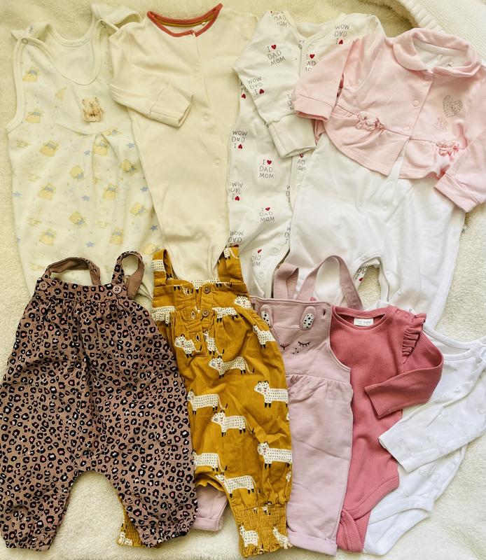 Набор состоит из 9 позиций 3 песочника ( в использовании по разу были состояние идеальное ) 2 боди 3 слипа 1 комбинезон Производители: Next США Фламинго Mothercare
