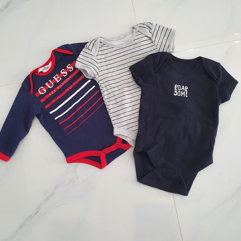 Размер 6-9 месяцев, состояние нового. 1 guess и 2 primark