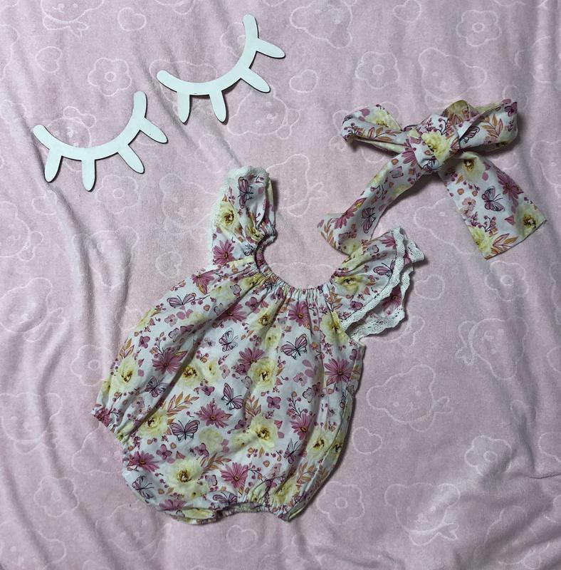 199 💙💛милый хлопковый ромпер с повязкой; 💙💛состояние новое,можно на подарок; 💙💛на рост 62-68;