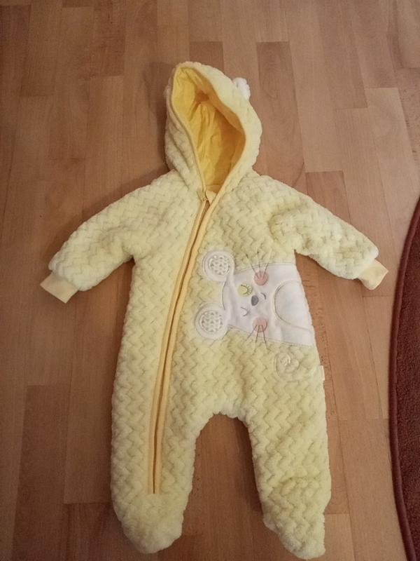 Чудовий яскраво жовтий комбінезончик-чоловічок для вашого малюка.верх махра, середина містить утеплювач.розмір на ріст 62см(3 міс).одягнутий один раз.підійде не весну,ранню осінь.за додатковою інформацією звертайтесь.