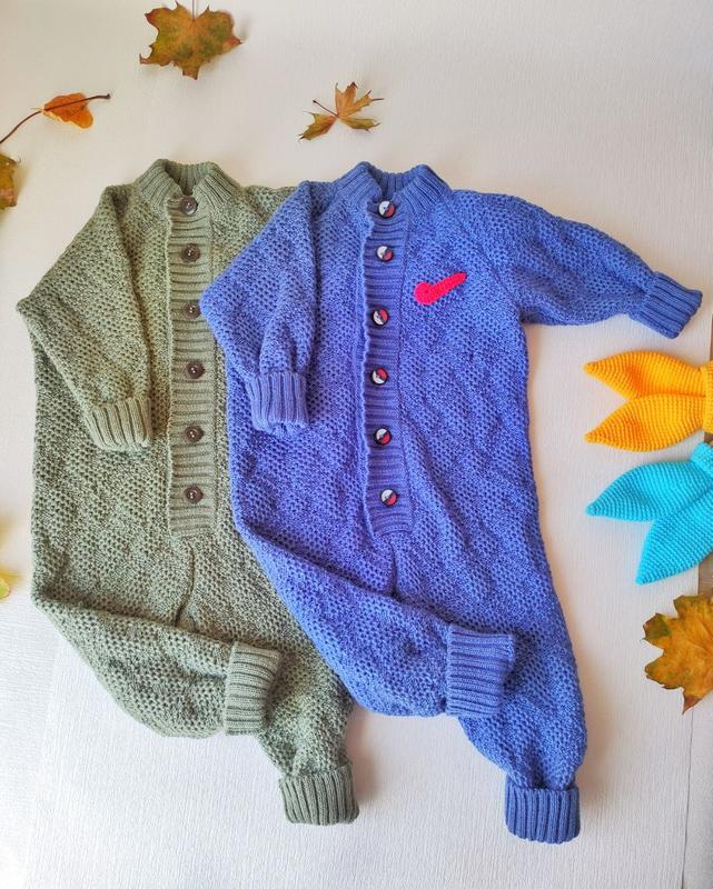Вязаний дитячий комбінезон ручної роботи, виконаний за допомогою побутової вязальної машини. Кобінезон теплий, м'який, не колючий, простий у догляді. Термін виготовлення під замовлення 5 робочих днів. Вартість може змінюватись в залежності від вибраного розміру та матеріалу Переваги наших комбінезонів: зберігають в теплі та від продування Вашого малюка і, як наслідок від застуди; вам не потрібно одягати кілька шарів одягу: комбінезон можна використовувати як самостійний елемент одягу так і, піддівати під верхній одяг; відсутність бічних швів дозволить лежати вашому малюку без незручностей; манжети дозволять рости комбінезону разом з Вашим малюком; оптимальний склад пряжі 50% меринос% 50% акрил. Мериносова шерсть стійка до забруднення, пропускає повітря і здатна вбирати надлишки вологи, залишаючись сухою. Акрил забезпечить початковий вигляд комбінезону навіть при частому пранні. Комбінезон пройшов вологу теплову обробку. ХАРАКТЕРИСТИКИ Розмір 62-74 Матеріал: - італійська напівшерсть - 50% меринос, 50% акрил Параметри: - довжина по спинці від горловини до низу - 58 см - довжина від пройми до низу по боковому шву - 46 см - довжина штанини від промежени - 21 см - напіокружнісь грудей - 27 см - довжина рукава від горловини - 29 см - довжина рукава по внутрішньому шву - 20 см - ширина рукава - 11 см - ширина горловони - 12 см - висота стійки - 3 см