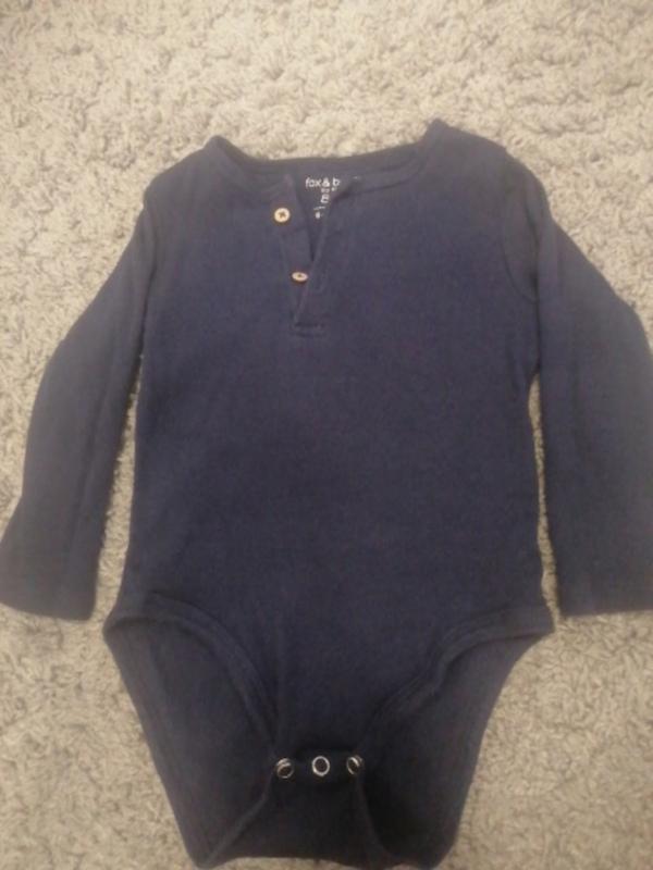 Бодік в рубчик з довгим рукавом. На 9-12м носили й довше. Орієнтуйтеся по замірах, які на фото.