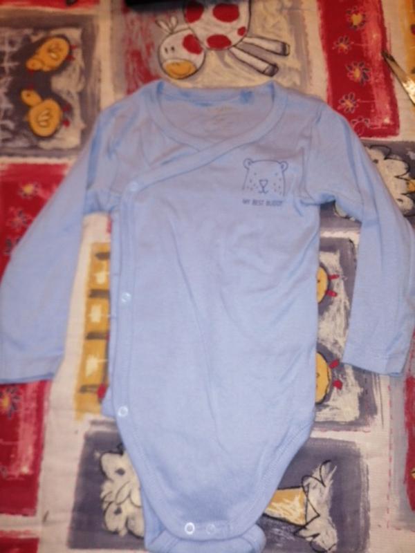 Светло синий бодик на мальчика 6-12 месяцев и ростом 74/80 см. Товар новый, привезенный из Германии.