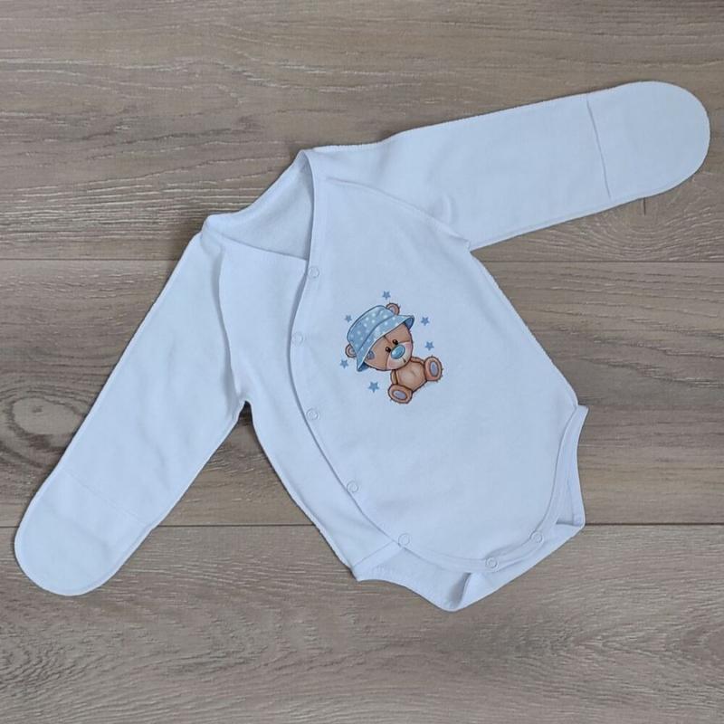 Бодик на кнопочках с закрытыми ручками для малышей. Бодик выполнен из натурального материала 100% хлопок. Бодик для младенцев с наружными швами, очень удобный, на кнопочках полностью расстегивается что значительно облегчает переодевания и смену подгузника, ручка может быть закрытой и открытой. ткань: футер 100% хлопок Размер 56 ( 0-3 мес.) производитель Украина мікі-нікі