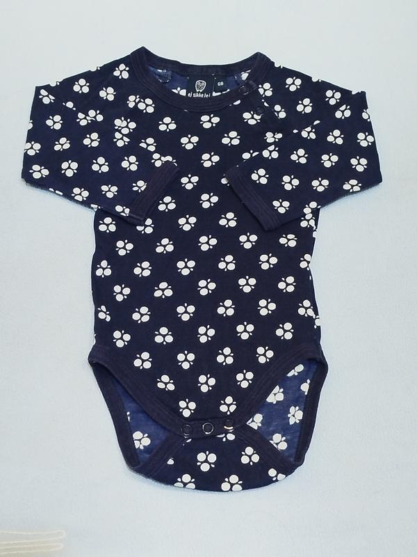Минимальный заказ у продавца на 100 грн. Синий, качественный бодик ej sikkelej на ребенка 3-6 месяцев в отличном состоянии. Длина изделия по спинке от плеча 38 см, полуобхват груди 20 см, длина рукава 25 см. Ткань хлопок, тянется. Модель 829