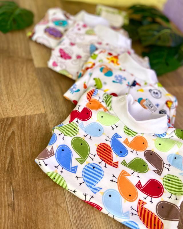 Яркий боди для малышей❤️❤️❤️ Ткань:интерлок(100%хлопок). Горловина на кнопочках👍 Размеры: 68см (3-6мес):Длина 39см,Ширина 22см,Рукав-23см(зверята,кексы,птишки) 74см (6-9мес):Длина 41см,Ширина-24см,Рукав-25см(все цвета) 80см (9-12мес):Длина 43см,Ширина-26см,Рукав-28см(птица,зверята)