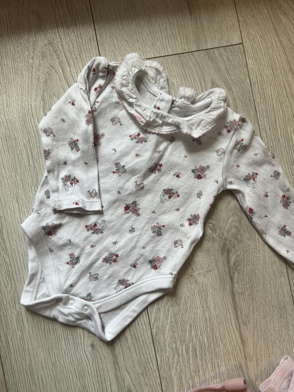 Нереальный бодик на маленькую красавицу, такого не найдете в маммаркете!! Ткань легенешка, 320 передать на фото, очень милый принт и воротничок😍 Единственное розовое пятно на воротнике, возможно полилась при стирке, может и выводится. Не сильно заметная Замеры в фото Смотрите другие мои объявления, много качественной одежды на такой возраст)) цены минимальны, а за большее количество доставляет скидку🙌🏻