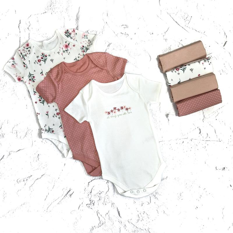 Чудові літні боді на ваших красунь 🥰 Ціна 👛 комплект 7 шт - 750 грн, 1шт - 125 грн Розміри в наявності ✅✅ 6 - 9 міс - 68 - 74 см (в наявності 1 шт повністю в квіти, 2 шт однотонних ) 9 - 12 міс - 74 - 80 см (в наявності 2 шт однотонних, один в квіти і один в горох) 12 - 18 міс - 80 - 86 см (в наявності однотонний) 18 - 24 міс - 86 - 92 см (один однотонний) 2 - 3 рочки - 92 - 98 см ❌