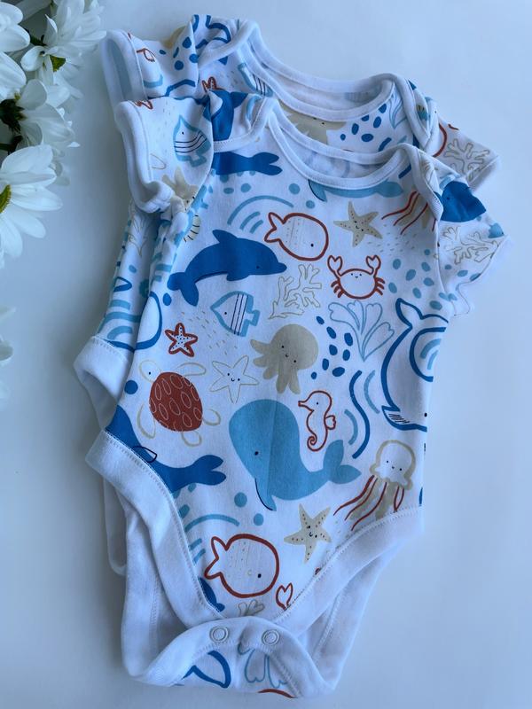 В наличии🤍 Боди с морскими друзьями🐟 🏷️ 165 грн ▫️плечики-конвертики ▫️короткий рукавчик ▫️застежка на кнопки ▫️мягкий и комфортный трикотаж ▫️дизайн с морскими друзьями Боди для поднятия настроения🐟 Состав ⁇ 100% хлопок Производитель ⁇ Великобритания ⁇ George Размер: ▫️56-62 (0-3 месяца) тон, что выбираете нас💫