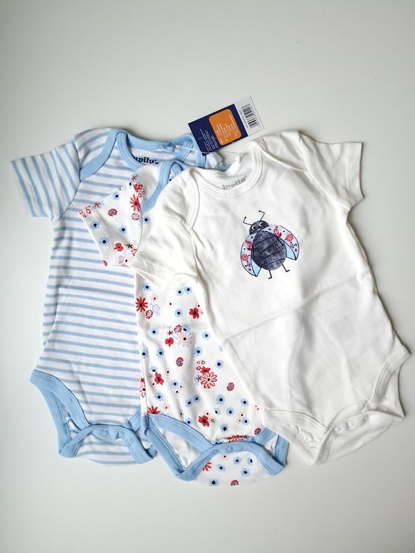Указана цена за 1941 при покупке всего набора 3 шт 255 грн. Наличие: р.62-68 на 2-6 мес. Мягкий и очень приятный на ощупь бодик короткий рукав темно белого с рисунком, белого в цветы и в полосе цвета от немецкого бренда Lupilu® создан с любовью к лучшим традициям немецкого качества и комфорта для ребенка. Состав: 100% хлопок.