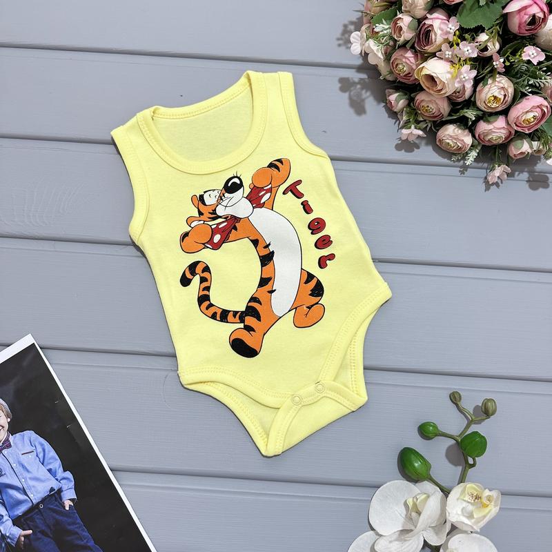 🌸Боди тигрик желтый. Рисунок - накат. Тканина 100% бавовна. Производитель Турция. 📐Замеры: 62 - длин. 34/полуобх.20 68 - длин. 37/полуобх.20 74 - длин. 39/полуобх.21 80 - длин. 42/полуобх.22 86 - длин. 43/полуобх.24