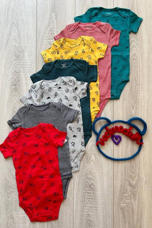 по штучно цена за шт 115 грн в наявності розмір NB на зріст до 55 см (зелений з динозаврами і червоний продані) розмір 3 міс на зріст 55-61 см (жовтий продано) розмір 6 міс на зріст 61-67 см (залишились червоний в смужку і синій в смужку) розмір 18 міс на зріст 78-83 см (залишились червоний в смужку, жовтий, зелений в смужку та в темно-синю смужку) ціна вказана за один! боді нові, етикетка одна на весь набір, а не на кожному боді! внизу боді Carters всі кнопки-застібки нашиті на спеціальному шнурі, для того щоб не рвалась тканина та не розтягувався низ боді. Carters - дитячий одяг високої якості. Тканина не линяє не витягується и не вигорає. Розрахована на довготривале носіння одягу для Вашої дитини. Склад тканини: 100% бавовна. Машинне прання. Carter´s, США