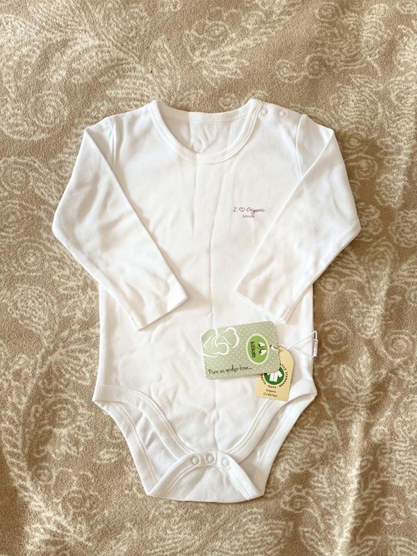 Бодик турецкой фирмы Kitikate на 9-12 месяцев 100% коттон. Качество отличное, не растягивается и хорошо стирается. Проверено, так как весь первый гардероб своего ребенка был именно от этой фирмы.