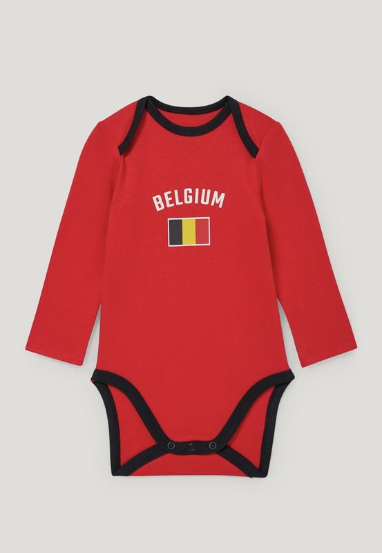 Для маленьких футбольних уболівальників: дитяче боді з м'якого трикотажу в збірному дизайні з кнопками на промежині. Розташований бельгійський принт.