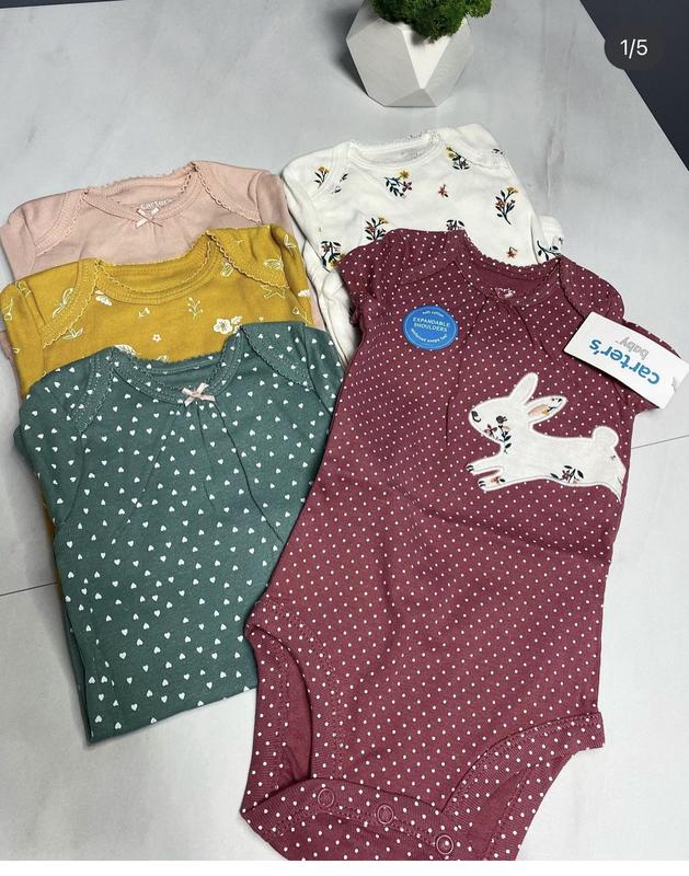 Новенькие боди, очень приятные на ощупь, в комплекте 5шт. В наличии 2 размера: 6мес - 61-69см 9мис- 69-72см Больше вариантов на странице toysbox.v_o