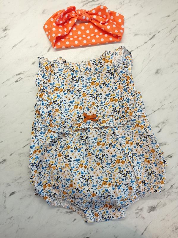 Очень красивый и милый ромпер на малышке. Тканина бавовняна, не трикотаж. На спинке застегивается на пуговицы. Стан идеален.