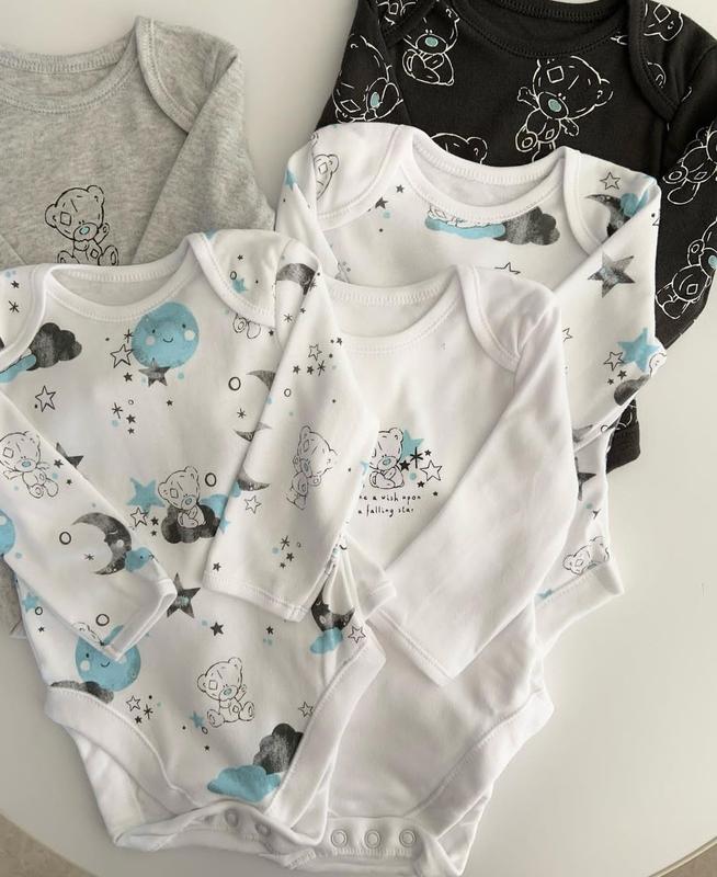 В наличии новые боди бренда George Сами боди без броков, потому что идут наборами в фирменных пакетах, потому что если нужно на подарок поштучно имейте это в виду. Могут маломерить ▪️first size / 50-56cm ▪️3-6m / 62-68cm ✔️белый с рисунком по всему боди ▪️6-9m / 68-74cm ✔️белый с рисунком по всему боди, белый с медведями спереди, черный ▪️9-12m / 74-80cm ▪️12-18m / 80-86cm📏41-42cm✔️белый с рисунком по всему боди ▪️18-24м/ 86-92см 📏43-44cm✔️белый с рисунком по всему боди 💴106грн/шт Перед заказом уточняйте пожалуйста наличия) В наличии большой ассортимент одежды от 0 до 6р, не все забрасываю на шкаф, потому что это не основная платформа для продаж. Пишите что именно вас интересует, я скину варианты)