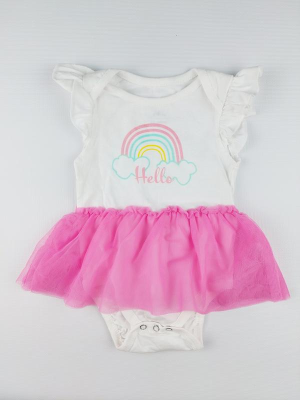 Боді з тюлевою спідничкою на кнопочках, рюшики на плечиках. Склад Бавовна. Розміри і заміри: 6-9 міс - довжина 36 см 12-18 міс - довжина 42 см